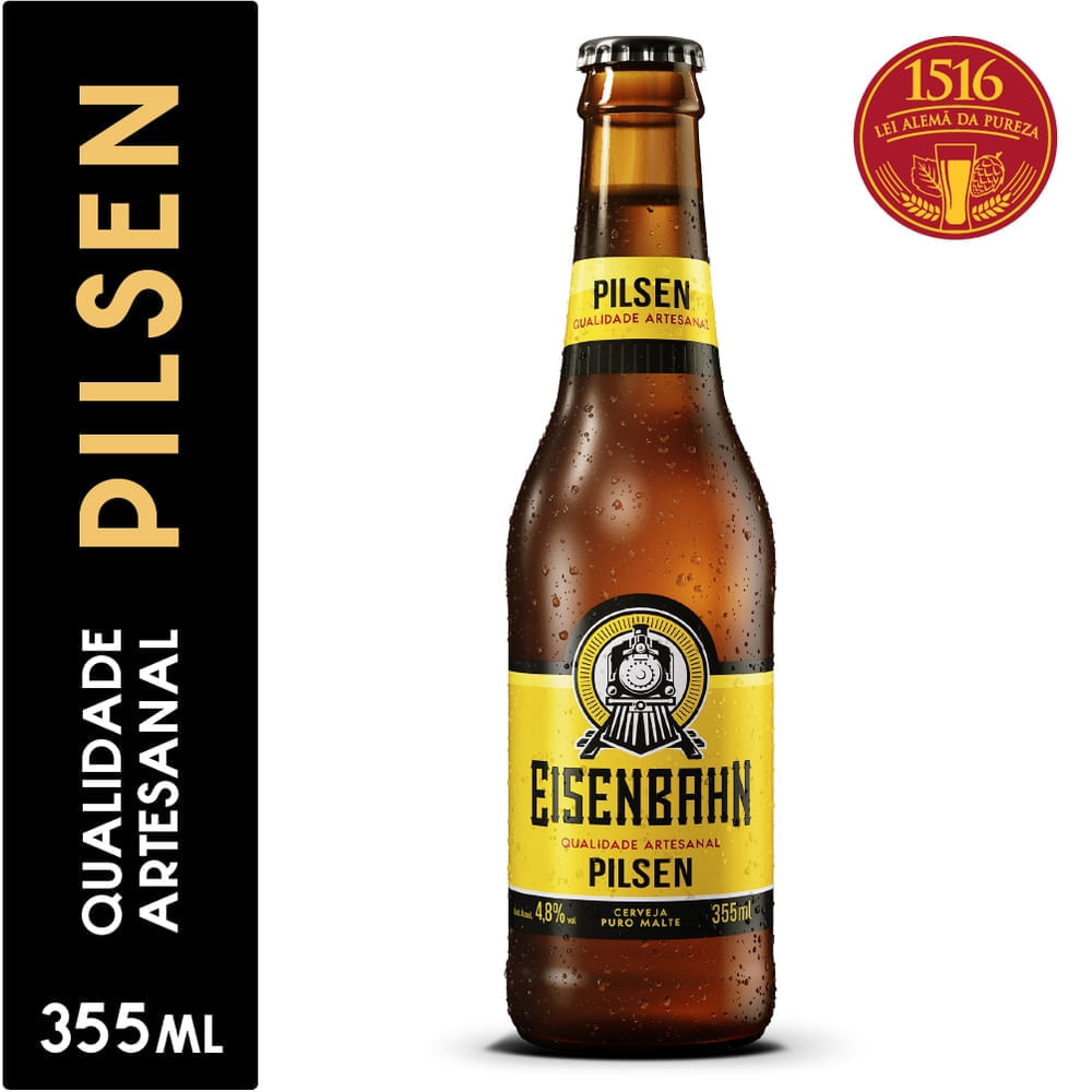 A Cerveja Eisenbahn Pilsen Puro Malte Long Neck 355ml é a escolha ideal para quem aprecia uma cerveja de qualidade, com sabor equilibrado e refrescância na medida certa. Produzida com puro malte de cevada, segue o estilo pilsen tradicional, entregando uma bebida clara, dourada e com espuma cremosa.